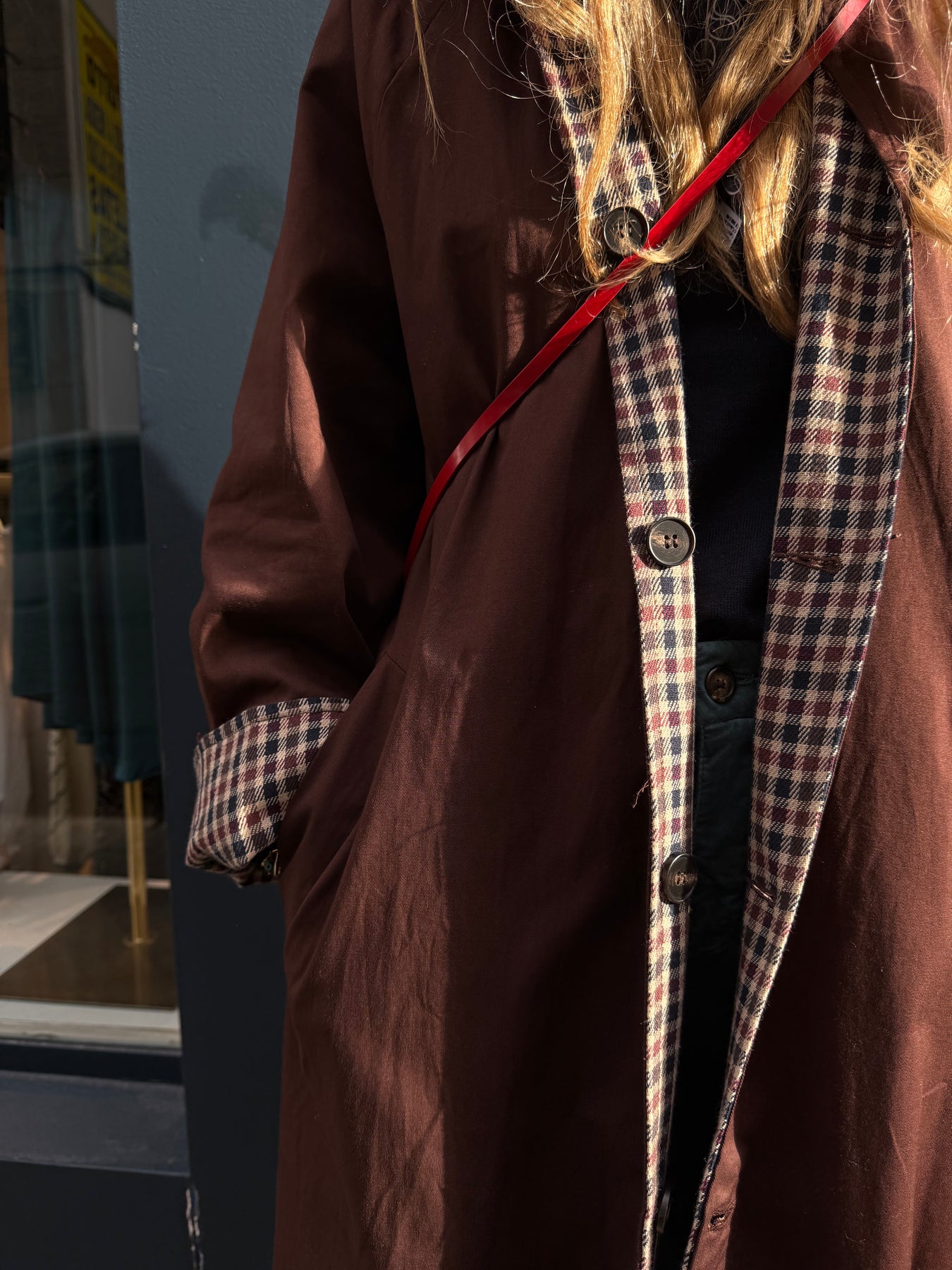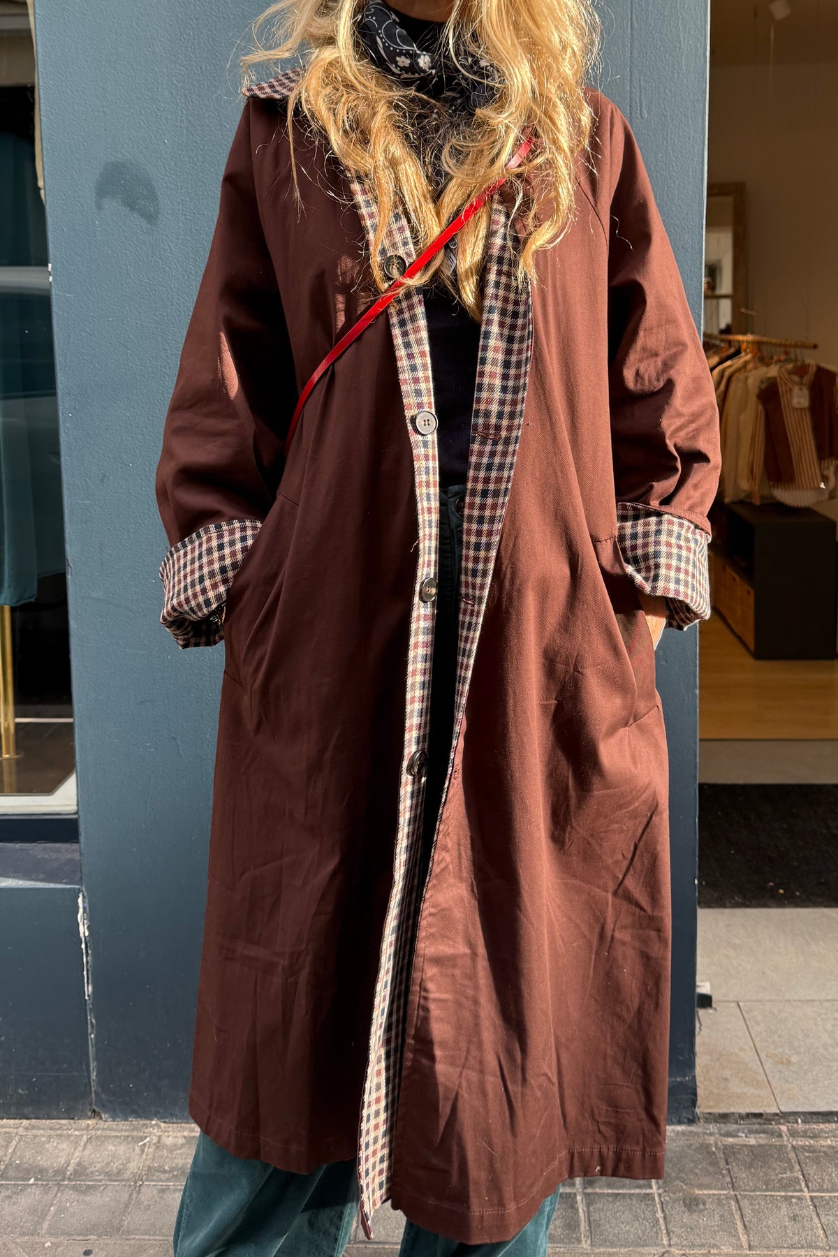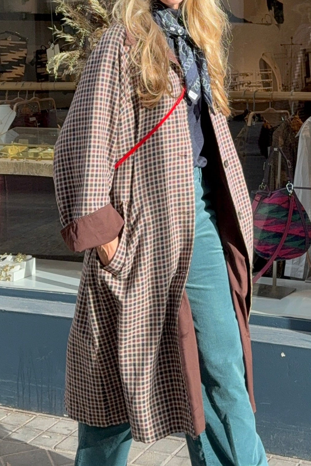 Mejora tu armario con este trench largo en un refinado tono marrón claro, con un lujoso cuello de velours. Diseñado para ofrecer elegancia y comodidad, aporta una sofisticación atemporal perfecta para las estaciones de entretiempo o para un look diario elegante. El suave cuello de velours añade un sutil contraste táctil, realzando la silueta clásica del trench con un toque moderno.