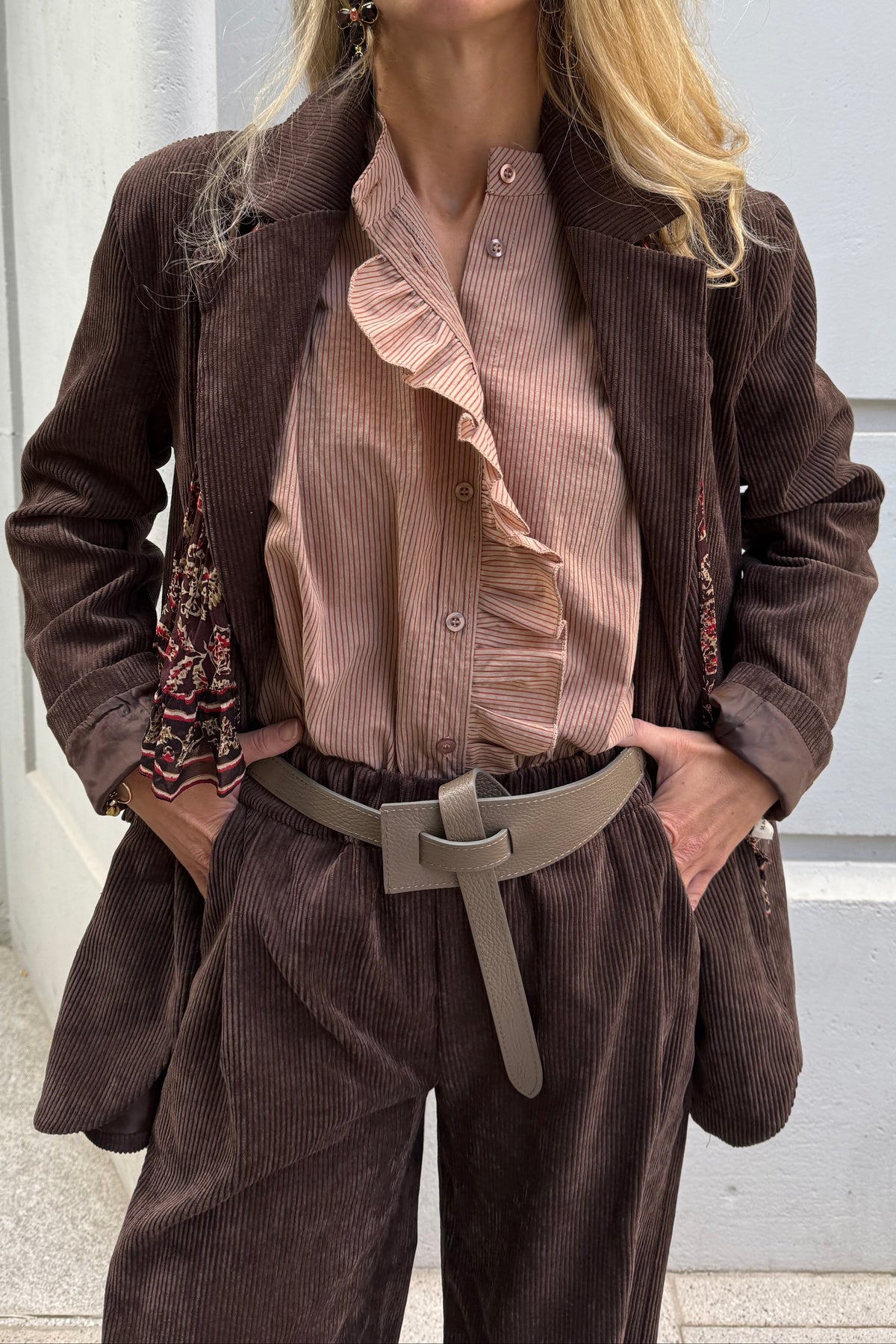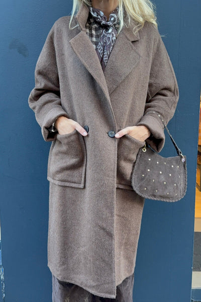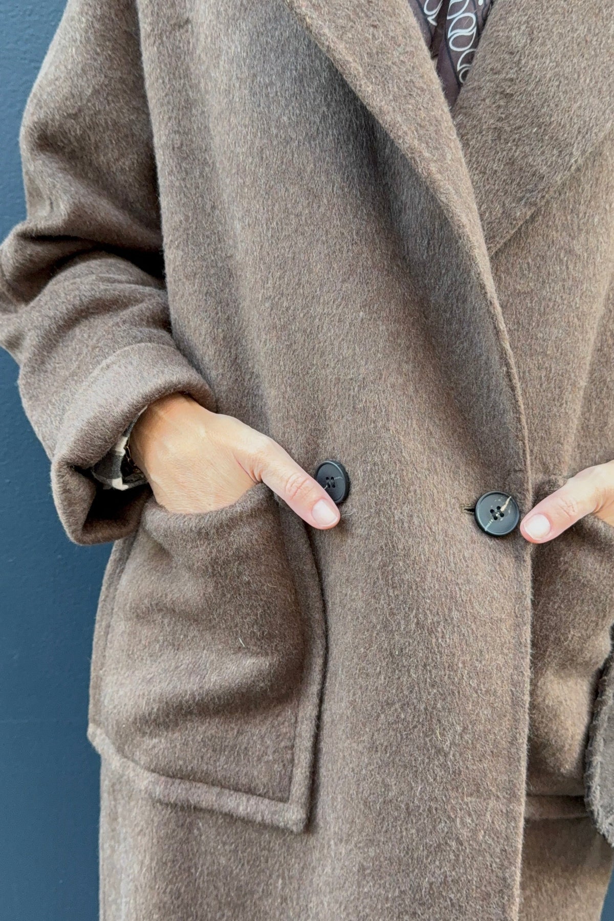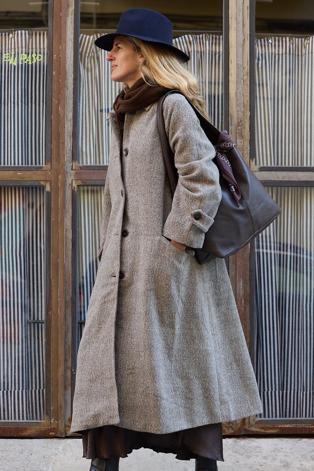 Mejora tu armario con este trench largo en un refinado tono marrón claro, con un lujoso cuello de velours. Diseñado para ofrecer elegancia y comodidad, aporta una sofisticación atemporal perfecta para las estaciones de entretiempo o para un look diario elegante. El suave cuello de velours añade un sutil contraste táctil, realzando la silueta clásica del trench con un toque moderno.