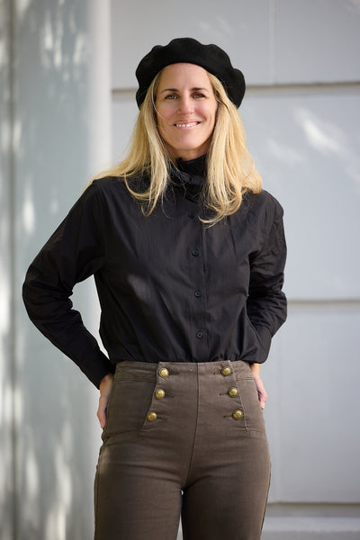 Boina clásica en negro, un accesorio atemporal que añade elegancia y carácter a cualquier conjunto.